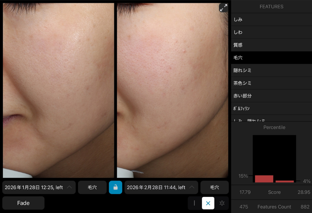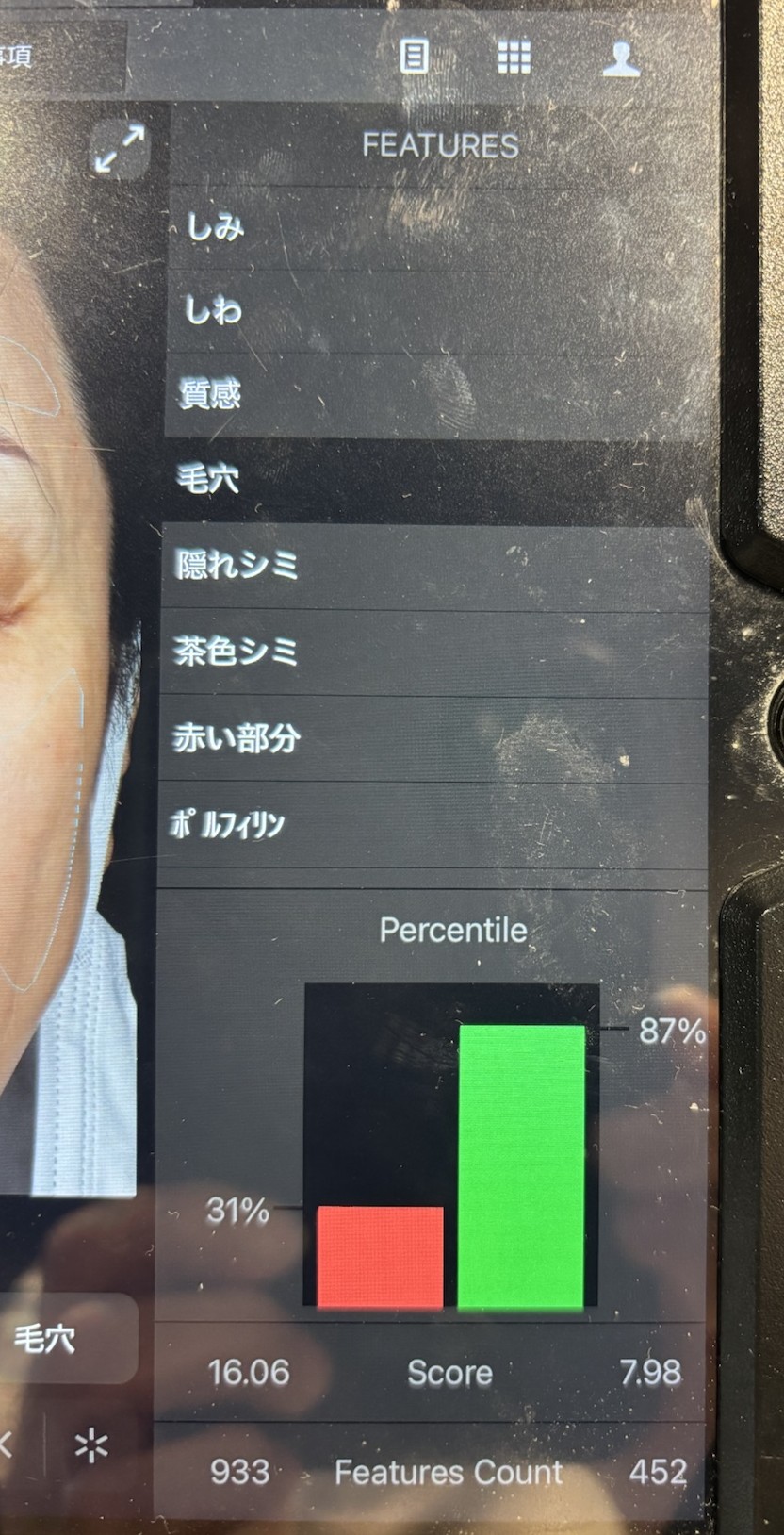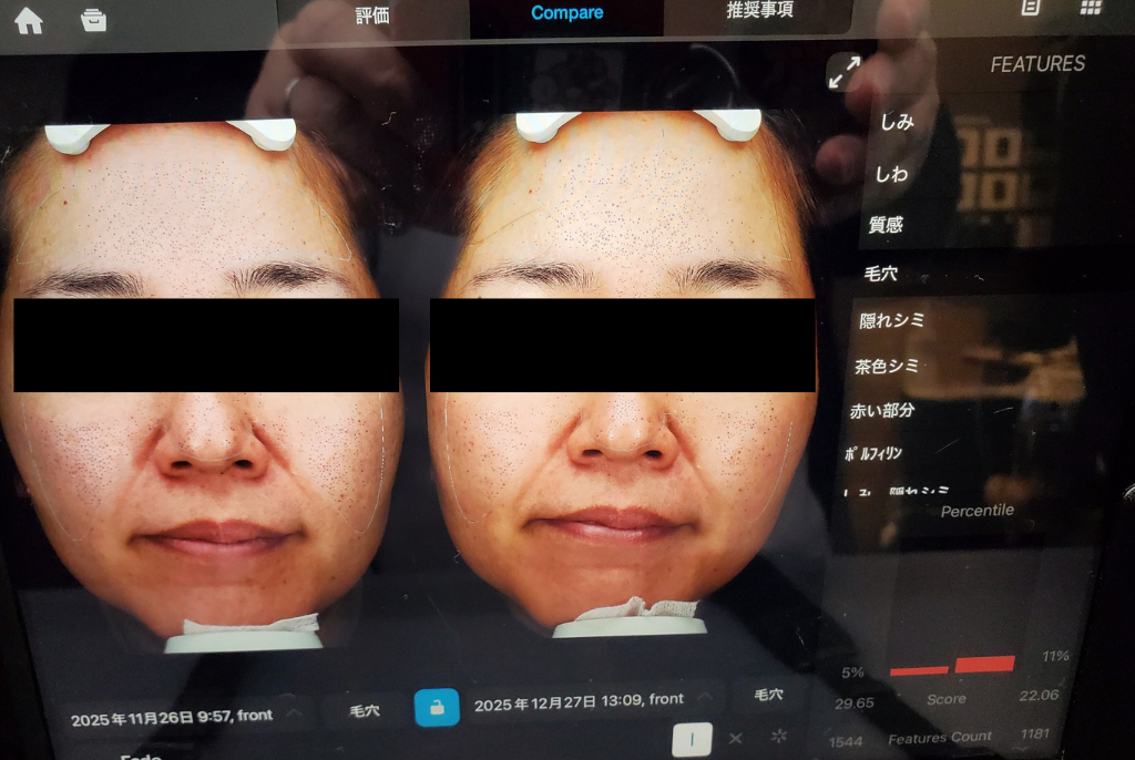 今まで何をしても改善できなかった毛穴スコアが低値に。年齢平均値より劇的に改善