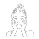 適量の乳液を両手のひらにのばし、頬から広げてなじませます。